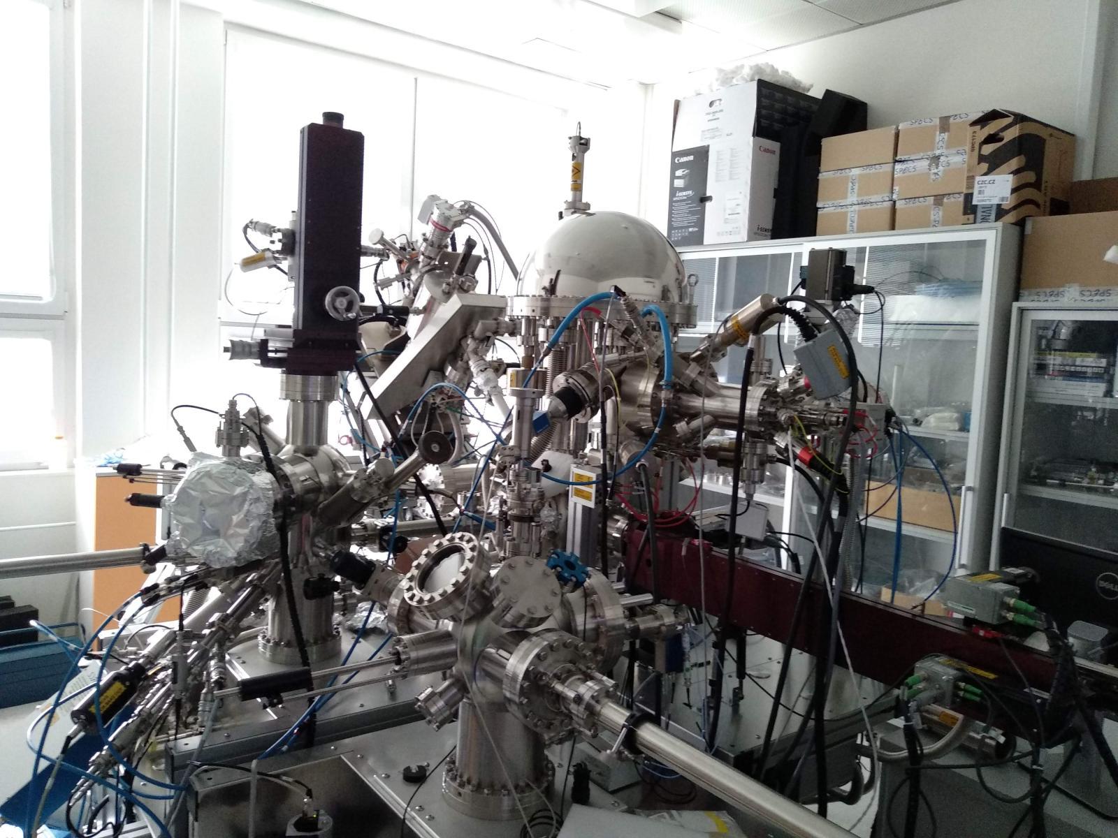 The system consists of four interconnected vacuum chambers (SPECS) pumped by turbomolecular and ion getter pumps (pressure of residual gases ~ 10-10 mbar).